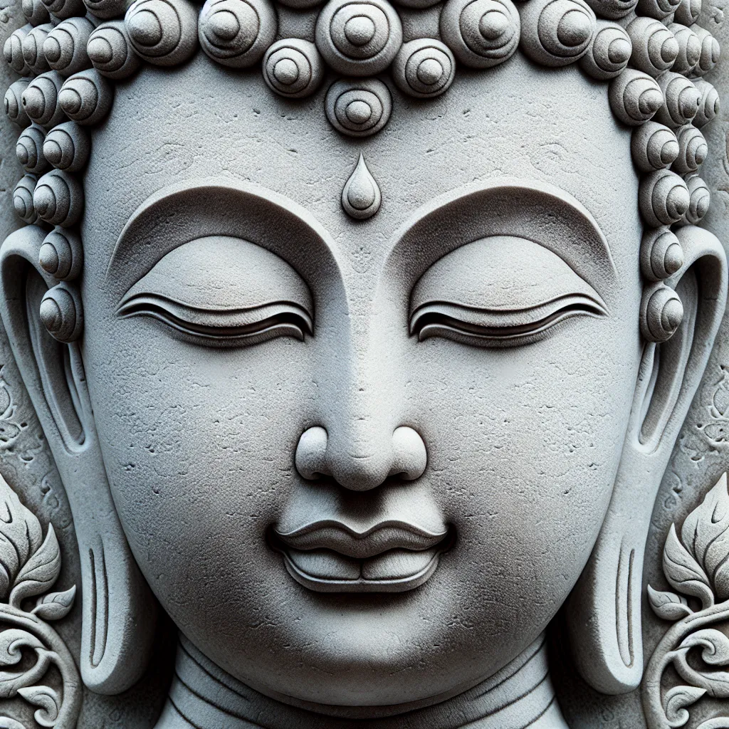 Лицо Будды символизирует спокойствие, мудрость и сострадание. Оно часто изображается с закрытыми глазами, что символизирует внутреннее сосредоточение и медитацию. Улыбка Будды — это символ внутреннего мира и удовлетворенности.