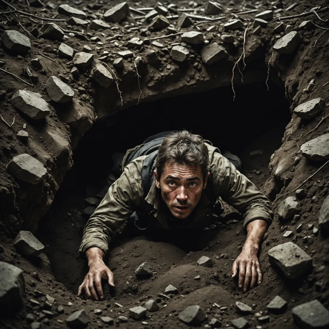 Погребение заживо — это ситуация, когда человек оказывается под землей в замкнутом пространстве, обычно из-за обвала или других катастрофических обстоятельств, при этом сохраняя сознание и способность дышать. Основная опасность в таких случаях — нехватка воздуха и риск удушья.